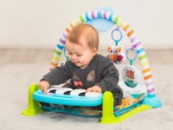 Šarena dječja igraća podloga s klavirom i projektorom raste s bebom i podržava njezin razvoj od rođenja. Nudi položaje za ležanje na leđima i na trbuščiću, sjedenje i samostalnu igru. Sadrži viseće igračke s sigurnim zrcalom, interaktivno klavirče s melodijama i svjetlosnim efektima te dvorazinsku regulaciju glasnoće. Potiče osjetilni razvoj, motoriku i koordinaciju.