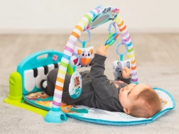 Interaktivno klavirče sa svjetlosnim efektima i melodijama motivira djecu na pokrete nožicama i ručicama. Viseće igračke, zvečkice i dječje zrcalo razvijaju vid, sluh i dodir te potiču koordinaciju oko–ruka. Podloga je mekana, ugodna na dodir i jednostavna za održavanje.