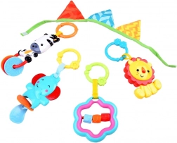U pakiranju ćete pronaći 30 plastičnih loptica i četiri viseće igračke koje pomažu u razvoju motoričkih vještina.