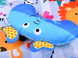 Podloga pomaže razvijati motoričke vještine i maštu djeteta zahvaljujući šarenim igračkama na lukovima. Upotreba materijala omogućuje djetetu učenje prepoznavanja različitih oblika, boja i tekstura, a šuškavi elementi potiču znatiželju. Podloga je lako sklopiva i periva, idealna za putovanja. Ova igraća podloga raste s vašim djetetom i osigurava mu sate aktivne igre.