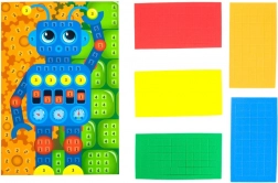 Ovaj jednostavan i šaren set razveselit će sve male stvaratelje. Na kartonsku podlogu se prema predlošku ili vlastitoj mašti lijepe samoljepljivi pjenasti dijelovi, pa dijete razigrano izradi lijepu sličicu bez nereda i bez potrebe za ljepilom ili škarama.