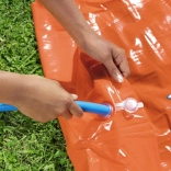 Brzo i jednostavno postavljanje. Dovoljno je razmotati tobogan na travnjak i priključiti crijevo. Posebni učvršćivači osiguravaju da tobogan ostane čvrsto na svom mjestu.