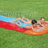 Tobogan Bestway je odličan izbor za osvježavajuću ljetnu zabavu u vrtu. Dovoljno ga je raširiti, pričvrstiti za tlo i priključiti vrtnu cijev. Zahvaljujući čvrstim učvršćivačima tobogan ostaje na svom mjestu, a ugrađeni prskalice osiguravaju stalni mlaz vode za maksimalno klizanje.