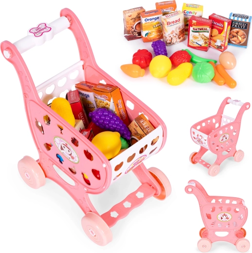 Set sadrži autentično izgledajuća kolica s raznim namirnicama, koja pomažu razvijati motoričke i organizacijske vještine. Mališani se mogu radovati mnogim replikama pravih proizvoda, od povrća do slastica, zahvaljujući čemu učenje kupovine postaje fascinantno iskustvo.