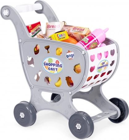 Sivi dječji trgovački kolica za igru u supermarketu ili kuhinji + 18 dodataka