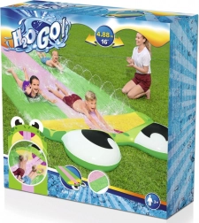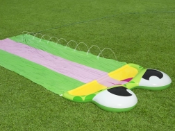 Montaža je brza i laka – jednostavno razmotajte tobogan na travi, priključite vrtno crijevo i zabava može početi!