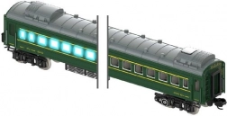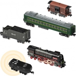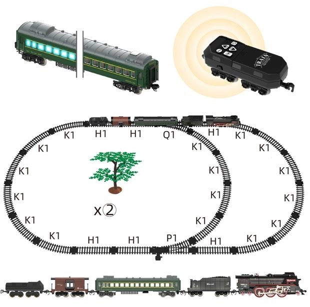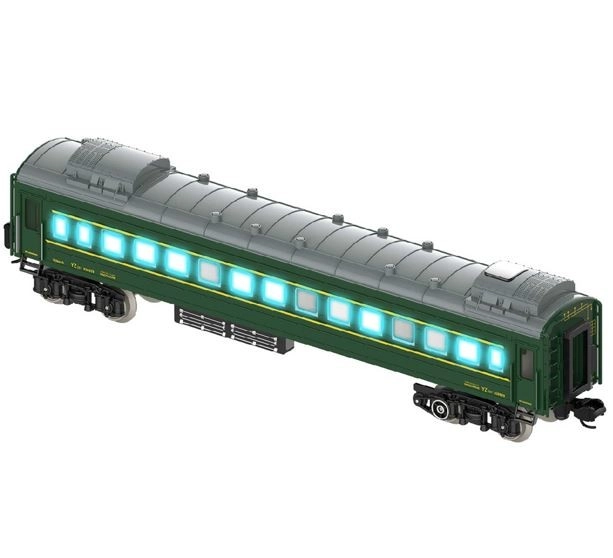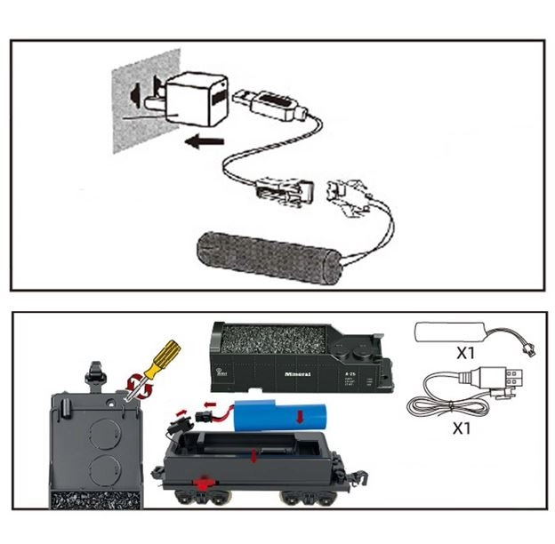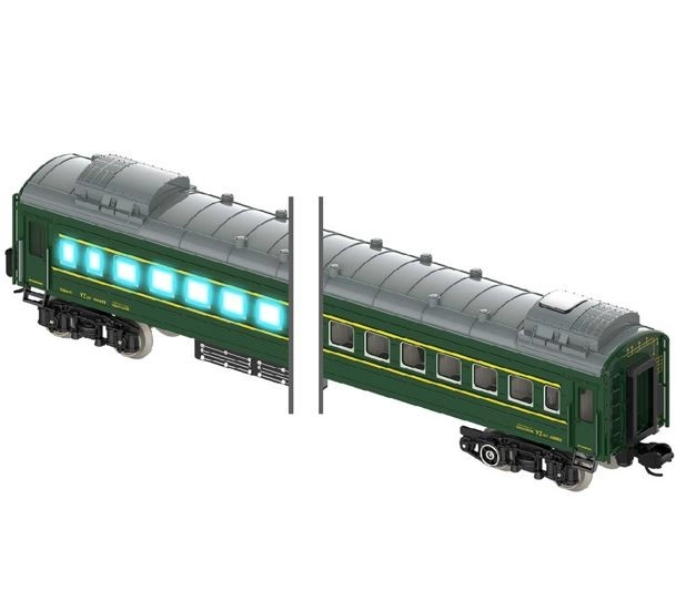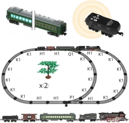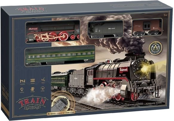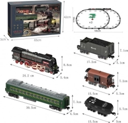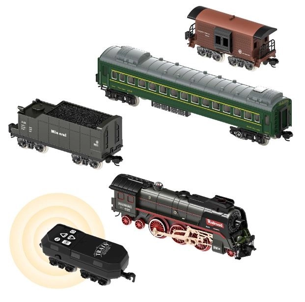 Lokomotiva + 4 vagona, svjetlo, zvučna pruga dimenzije: Dimenzije prozorskog pakiranja: 65x7,5x42 cm. Punjenje preko USB-a. Osvijetljeni vagon za putnike. Funkcija dima u lokomotivi.