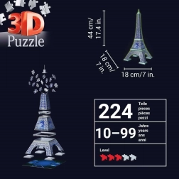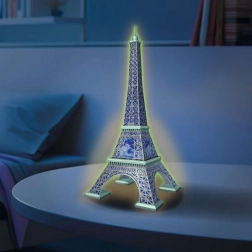Uživajte u zabavnom i ujedno opuštajućem sastavljanju kultnog Eiffelovog tornja u posebnom svjetlećem izdanju. Zahvaljujući preciznoj izradi dijelova RAVENSBURGER, gradnja je glatka, bez potrebe za ljepilom, a gotov model djeluje kao stilska dekoracija.