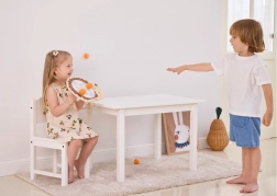 Ova drvena igračka namijenjena je djeci od 3 godine i pruža izvrsnu zabavu kroz ciljano bacanje loptica na metu. Zahvaljujući tome djeca mogu usavršavati svoje vještine ciljanja. Osim toga, igračka se lako sklapa i rasklapa, što olakšava prenosivost i održavanje.
