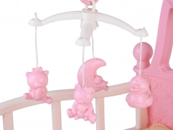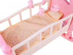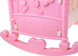 Ova plastična kolijevka je idealna za lutke ili plišane igračke do 42 cm. Ukrašena srcima i malim vrtuljkom, pruža djeci radost u njezi njihovih igračaka te podržava njihovu kreativnost i maštu.