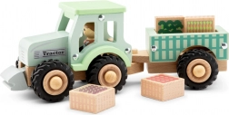 Ovaj prekrasan set uključuje traktor u nježno zelenoj boji, odvojivu prikolicu i četiri drvena bloka s tiskom rajčice, patlidžana, mrkve i brokule. Djeca mogu ukrcavati, prevoziti i iskrcavati povrće, vježbati koordinaciju ruka-oko i otkrivati svijet farmera.