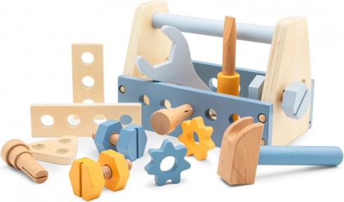 Ovaj bezvremenski drveni set alata omogućuje djeci da se igraju pravih majstora. Zahvaljujući otvorima u ormariću mogu vježbati zatezanje vijaka i učvršćivanje matica, razvijati prostornu percepciju i učiti logičkom razmišljanju. Kvalitetna izrada i ugodni materijali osiguravaju dug vijek trajanja i sigurno korištenje.