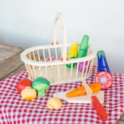 Košarica, daska i nož zajedno s bogatim izborom povrća olakšavaju spremanje i prenošenje te potiču realistične igre u dječjoj kuhinjici.