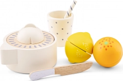 Slatka drvena preša za citruse za djecu od 3 godine pretvara svaku dječju kuhinjicu u malu sokovnicu. Set sadrži voće na čičak, drveni nož, sokovnik i čašu sa slamkom – idealno za maštovitu igru, razvoj fine motorike i učenje vještina. Izrađeno od ekološkog drva s FSC certifikatom.