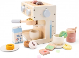 Drveni aparat za kavu izvrstan je dodatak svakoj dječjoj kuhinjici. Djeca mogu posluživati zamišljenu kavu i čaj roditeljima, prijateljima ili plišancima te tako vježbati komunikaciju, maštu i igru uloga. Realistični upravljački elementi, kapsule, vrećice čaja i dodaci osigurat će sate zabave.