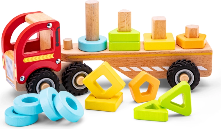 S kamionom koji ima odvojivu prikolicu djeca mogu uživati u slaganju i razvrstavanju. Zahvaljujući izdržljivom materijalu igračka podnosi i zahtjevniju upotrebu u dječjim rukama.