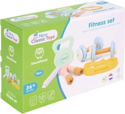Dječji drveni fitness set savršen je način kako motivirati male sportaše na kretanje i oponašanje vježbanja kao njihovi roditelji. Sadrži:
