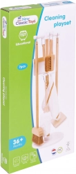Set uključuje mop, metlu, prašnicu, krpu za čišćenje, lopaticu i ručnu metlicu. Djeca se mogu igrati i učiti sa svim alatima baš kao i odrasli.