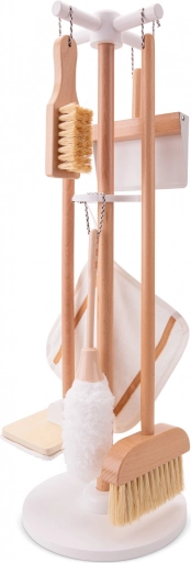 Predstavljamo vam set za čišćenje koji je idealan za male pomagače. Djeca će se s njim odlično zabaviti dok uče osnove čišćenja i razvijaju svoju kreativnost i motoričke sposobnosti. Sadrži mop, metlu, prašnicu, krpu za čišćenje, lopaticu i ručnu metlicu. Stalak osigurava praktičnu organizaciju alata.