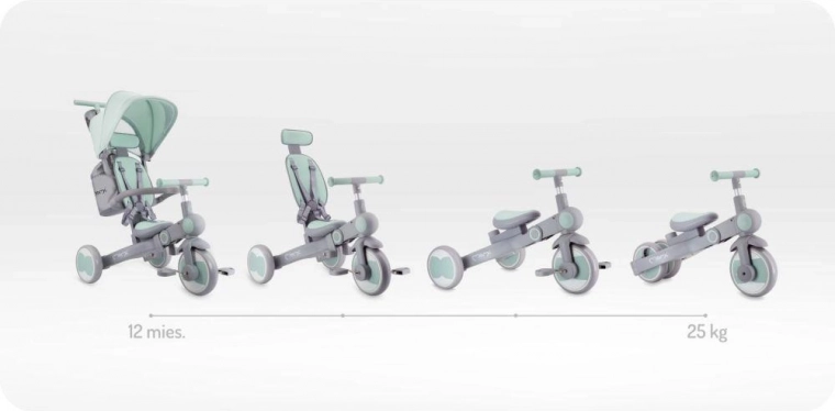 - 4u1: trokolica, trokolica koja omogućuje samostalnu vožnju djeteta, guralica i balans bicikl