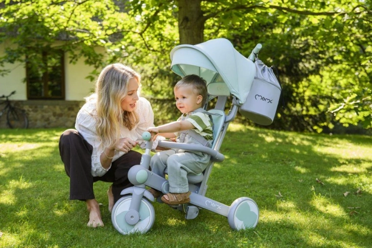 MoMi SOLIVIA kombinira guralicu s pedalama i bez njih, trokolicu i balans bicikl. U kompletu su također torba i držač za piće. Prikladna je za djecu od 12 mjeseci do maksimalne težine od 25 kg.