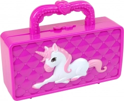 Stilski dječji toaletni set u obliku rasklopive torbice s jednorogom oduševit će svaku malu princezu. Zahvaljujući kompaktnim dimenzijama idealan je za dom i putovanja te čuva sve dragocjenosti na okupu. Ugrađeno zrcalce u obliku srca pomaže provjeriti završni izgled.