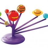 Izradite stalak za planete od štapova, postavite planete na ruke i obojajte ih. Navečer uključite projektor i uživajte u pogledu na rotirajuće planete.