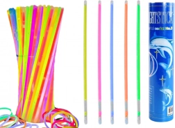 Set od 100 raznobojnih fluorescentnih narukvica. Narukvice svijetle u mraku i mogu se koristiti kao ukras ili narukvica.