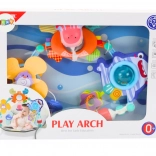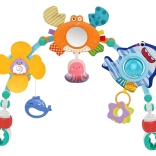Narančasti rak sa šuškavim elementom i ogledalom pruža zvukove i stimulira sluh djeteta. Dodatno, ogledalo omogućuje djetetu da otkriva svoj odraz i razvija sposobnosti opažanja. Plavi morski pas s rotirajućom zvečkom nije samo slatki ukras nego i osjetilna igračka. Rotirajuća zvečka razvija motoričke sposobnosti djeteta i nudi mu ugodne zvukove tijekom igre.