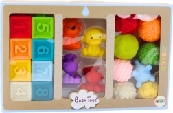 Meke edukativne kocke za kupanje predstavljaju inovativan set koji sadrži 20 raznobojnih gumenih dijelova. Svaka od osam kocki jedinstvena je po svojim značajkama koje pomažu razvijati kognitivne vještine djece. S različitim oblicima i reljefima, kocke se povezuju u širok spektar konstrukcija, što kroz igru trenira manualnu spretnost i koordinaciju oko-ruka.