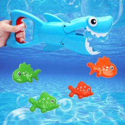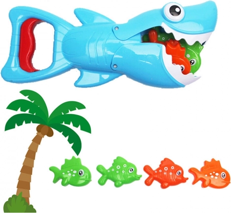 Ovaj igraći set osmišljen je kako bi na zabavan način upotpunio dječje kupanje. Veliki morski pas je gladan malih ribica koje plutaju po površini vode. Set je idealan za roditelje čija se djeca boje vode, jer omogućuje kroz igru upoznavanje s vodom i razbijanje straha.