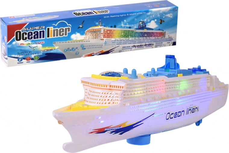 Ovaj izletnički brod oživi nakon uključivanja – počinje se kretati, zasvijetle raznobojna LED svjetla, a iz zvučnika se čuju zvukovi morskih valova i života na moru. Integrirani senzor protiv sudara prepoznaje prepreke i brod automatski mijenja smjer, što povećava sigurnost i realističnost igre.