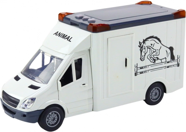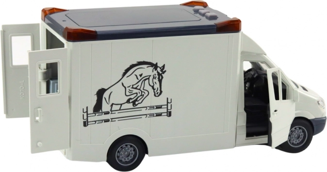 Transporter je opremljen otvarajućim vratima sa strane i straga, što olakšava ukrcaj i iskrcaj konja. Razigrani dizajn upotpunjuje realistična figurica konja koja donosi puno zabave i potiče dječju maštu.