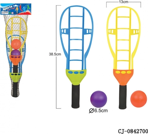 Zabavna i sigurna vještinska igra s dvama hvatačima i dvjema lopticama koja razvija koordinaciju, reflekse i potiče aktivno kretanje na otvorenom. Idealno za vrt, park i plažu; ispunjava norme CE i EN71, prikladno od 3 godine.