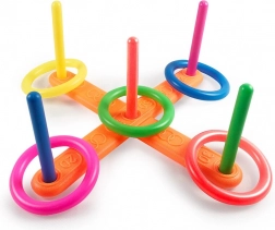 Zabavna i šarena igra bacanja prstenova na metu za djecu i odrasle, u kući i na otvorenom. Razvija koordinaciju oko–ruka, finu motoriku i koncentraciju. Sigurna plastika udovoljava normama CE i EN71. Jednostavna montaža, lagana i izdržljiva konstrukcija, prikladno od 3 godine.