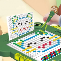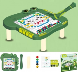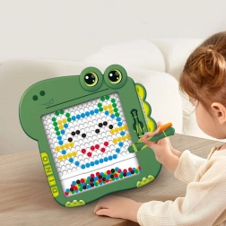 Otkrijte magnetnu ploču koja učenje pretvara u igru. Zahvaljujući prozirnom prozorčiću s obojenim kuglicama (crne, zelene, plave, crvene i žute) i magnetnom olovkom, djeca lako slažu uzorke, slova ili jednostavne crteže. Zeleni dinosaurus dizajn odmah će osvojiti male kreativce.