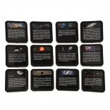 U pakiranju se nalazi 12 ilustriranih diskova (natpisi na engleskom) s objektima kao što su Zemlja, Sunčev sustav, Mliječna staza i Mjesec – idealno za zabavno učenje djece i odraslih. USB napajanje omogućuje povezivanje s prijenosnim računalom, power bankom ili mrežnim adapterom, dok integrirani timer uljepšava večernu relaksaciju i uspavljivanje.