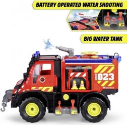 Vatrogasno vozilo Mercedes-Benz Unimog U530 izvrstan je igračka za djecu koja vole akciju i avanture. Ovo crveno vozilo, dužine 50 cm, opremljeno je svjetlosnim i zvučnim efektima koji donose autentičnost i zabavu u svaku igru. Postanite dio akcije spašavanja s njegovim pomičnim dijelovima, kao što su otvarajuća vrata i pomakljive osovine.