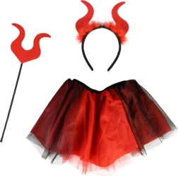 Slatki kostim vragolice je idealan za djevojčice u dobi od 3-7 godina. Kostim sadrži crveno-crnu tutu suknju, traku za kosu s rogovima i štapić, koji će vašoj maloj vragolici dati razigran i zabavan izgled.