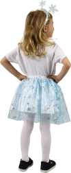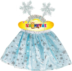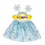 Plava suknja sa sjajnim snježnim pahuljama i satenskim pojasom donosi zimski čaroliju.