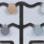 • Gornji dio: Sadrži staze s perlama na žičanim petljama, koje pomažu djetetu vježbati precizne pokrete ruku i koncentraciju.