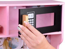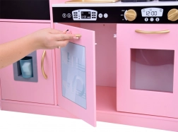 Ova stilska drvena kuhinja za djecu san je svakog malog kuhara. Izrađena je s detaljima za realan izgled i nije samo estetski privlačna, već i potpuno funkcionalna za realističnu igru. Igračka je idealna za djecu koja vole oponašati odrasle i žele se osjećati kao u pravoj kuhinji.