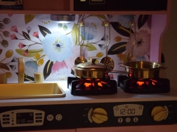Ova kuhinja ističe se retro dizajnom s cvjetnim uzorkom koji se savršeno uklapa u dječju sobu i donosi jedinstven stil.