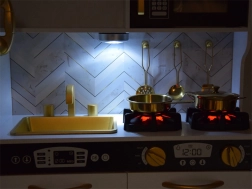 Kuhinjinica zahtijeva sastavljanje i kompatibilna je s 9 AG13 baterija za svjetlosne i zvučne efekte, te 3 AAA baterije, koje nisu uključene u isporuku, za dodatnu rasvjetu.