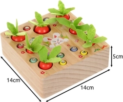Prema Montessori principima, djeca se mogu uroniti u ulogu kreativnog vrtlara i učiti na zabavan način kako saditi i brati mrkve ili igrati se s magnetnom udicom. Ovaj proizvod je idealan za razvoj dječje mašte i kreativnosti.