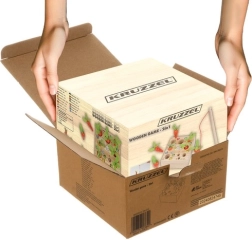Drvena igračka KRUZZEL 2u1 donosi radost učenja i igre u obliku šarenog vrtnog dizajna. Djeca će voljeti oponašati vrtlare igrajući se s magičnim glistama i umetajući mrkve u prave rupe. Igra podržava prepoznavanje oblika i boja, te razvija senzorne vještine.