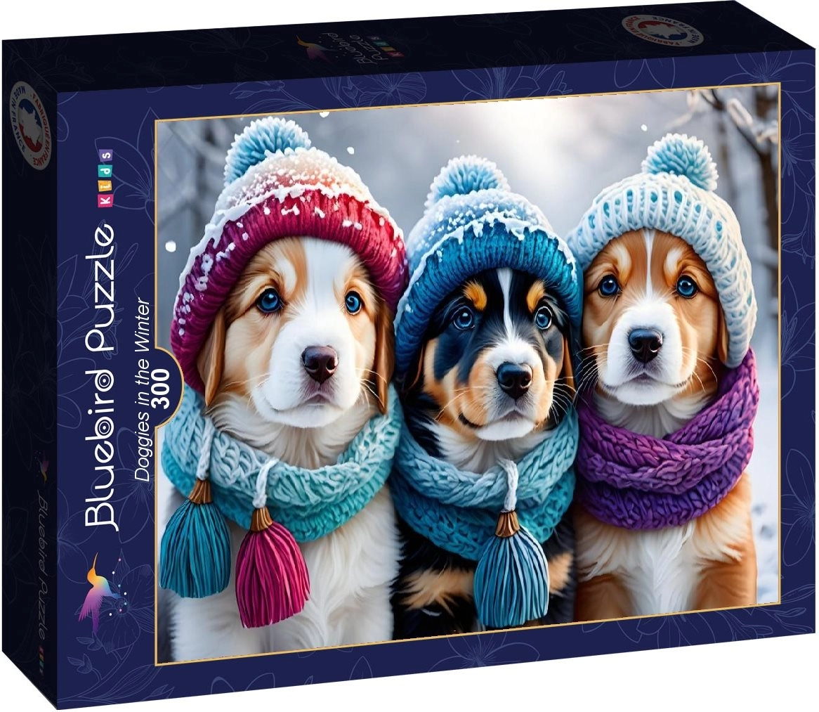Otkrijte radost slaganja s puzzle BLUEBIRD „Psići zimi” od 300 dijelova. Motiv pun prijateljskih psećih njuški u čarobnom zimskom ambijentu razveselit će djecu i odrasle te postati lijepa dekoracija nakon slaganja. Srednji broj dijelova osigurava uravnotežen izazov i ugodno provedeno vrijeme s obitelji.