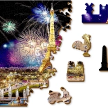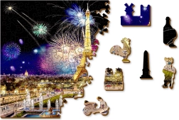Uživajte u jedinstvenom iskustvu slaganja s kvalitetnim drvenim puzzlama WOODEN CITY. Slika noćnog Eiffelovog tornja s vatrometom ističe se zahvaljujući bogatim bojama i preciznoj laserskoj izradi. Zahvaljujući dvostranom izvedbom 2-u-1 možete slagati prema slici ili prema oblicima na naličju.
