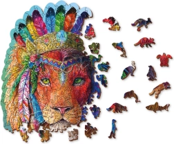 Otkrijte dojmljive drvene puzzle s motivom mističnog lava s bogatim ukrasima i živopisnim detaljima. Jedinstveno oblikovani dijelovi, uključujući životinjske siluete, pretvaraju slaganje u kreativnu i napetu zabavu. Zahvaljujući laserom naglašenim detaljima i savršeno glatkim rubovima, slaganje je ugodno, a završna slika djeluje kao umjetničko djelo pogodno i za dekoraciju interijera.