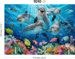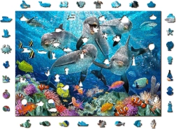 Pružite si jedinstveno iskustvo slaganja s motivom veselih dupina. Zahvaljujući posebno oblikovanim dijelovima, od kojih su neki u obliku životinja i mogu poslužiti i kao male figurice, dobit ćete netradicionalno slaganje puno iznenađenja. Precizna laserska izrada osigurava oštre detalje motiva i potpuno glatke rubove bez iverja.
